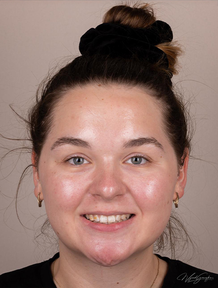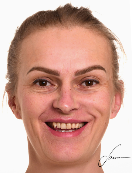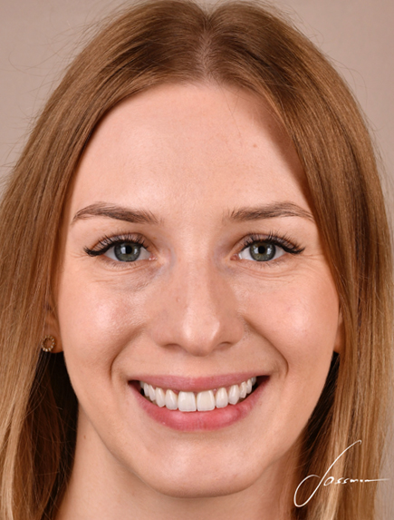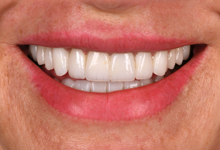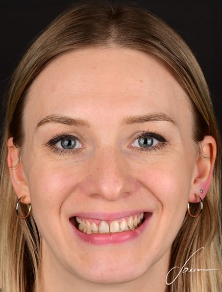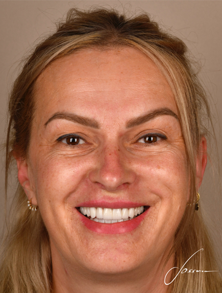 W celu zmiany estetyki uśmiechu i uzupełnienia braków zębowych pacjentka przeszła leczenie ortodontyczne, które uszeregowało zęby oraz wszczepienie implantów z odbudową kości, które odtworzyło wcześniej utracone zęby. Ostatecznym etapem była odbudowa za pomocą licówek pełnoceramicznych i koron na implantach.