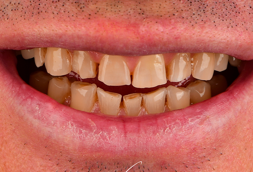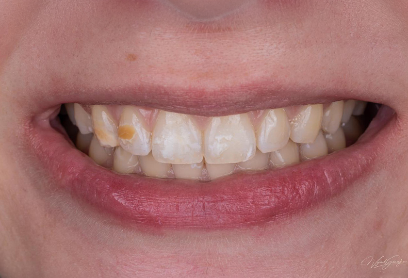 Pacjent zgłosił się w celu ogólnej poprawy estetyki uśmiechu. W toku leczenia zostało wykonane leczenie ortodontyczne i całkowita rekonstrukcja zgryzu za pomocą licówek i koron pełnoceramicznych.